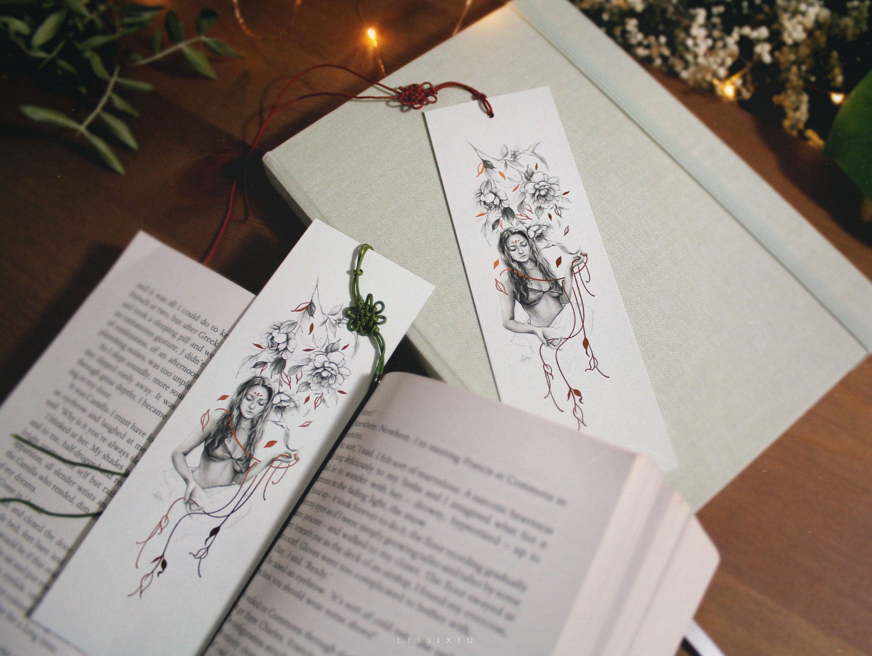 This bookmark is printed on 400gsm matte laminated card stock, embellished with copper foil and finished with an optional handmade Chinese knot tassel.